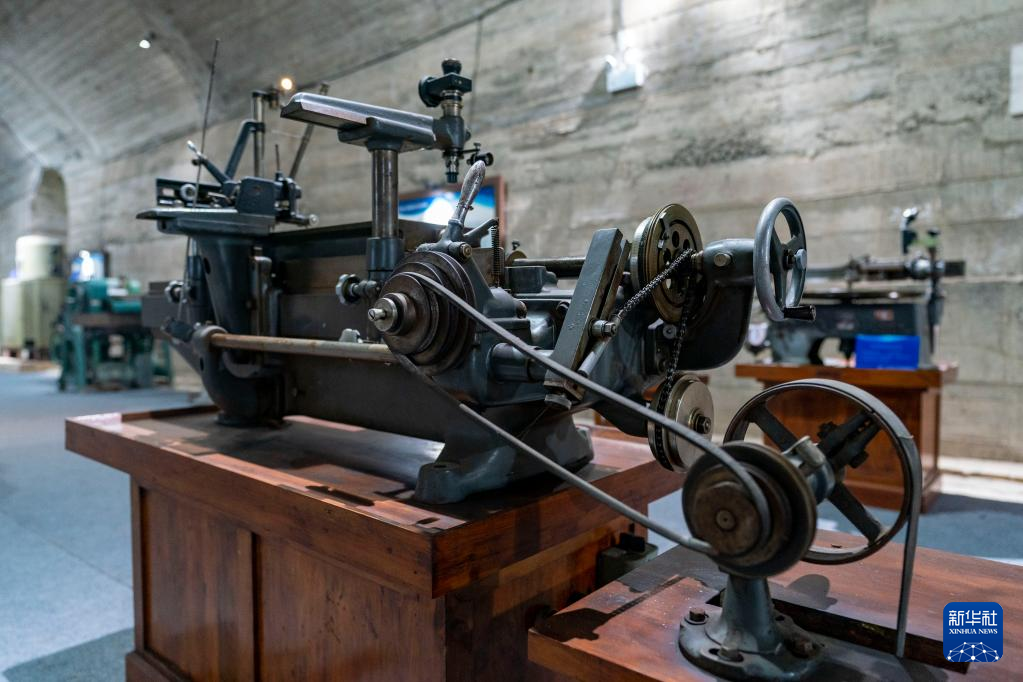 這是5月16日拍攝的中國光學(xué)歷史博物館內(nèi)收藏的螺紋車床。